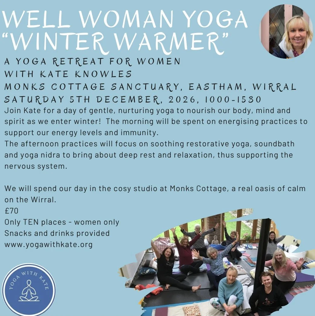 Join Kate for a retreat day of gentle, nourishing, nurturing yoga at lovely Monks Cottage, Eastham, Wirral.