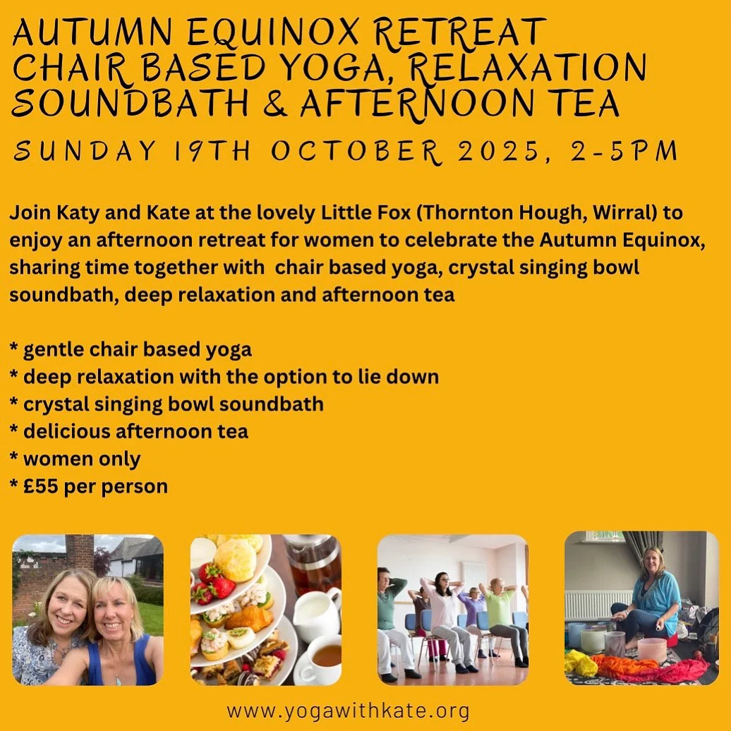 Join Katy and Kate for an afternoon of gentle, chair based nurturing yoga including a crystal singing bowl soundbath and yoga nidra (deep relaxation). You are welcome to lie on the floor for relaxation and the soundbath.