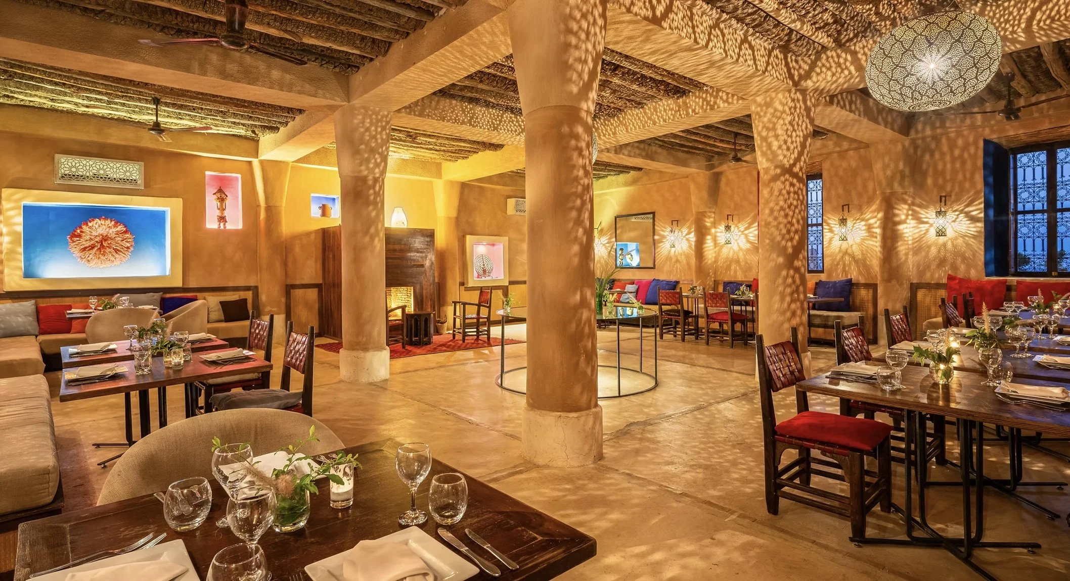 All rooms are built and furnished in the charming Berber style. Many of the rooms have a fireplace. The rooms have outside areas such as seating areas, gardens, terraces and courtyards. Additionally, all rooms have air conditioning, a safe, a hairdryer and bathrobes. There is a turndown service at night.