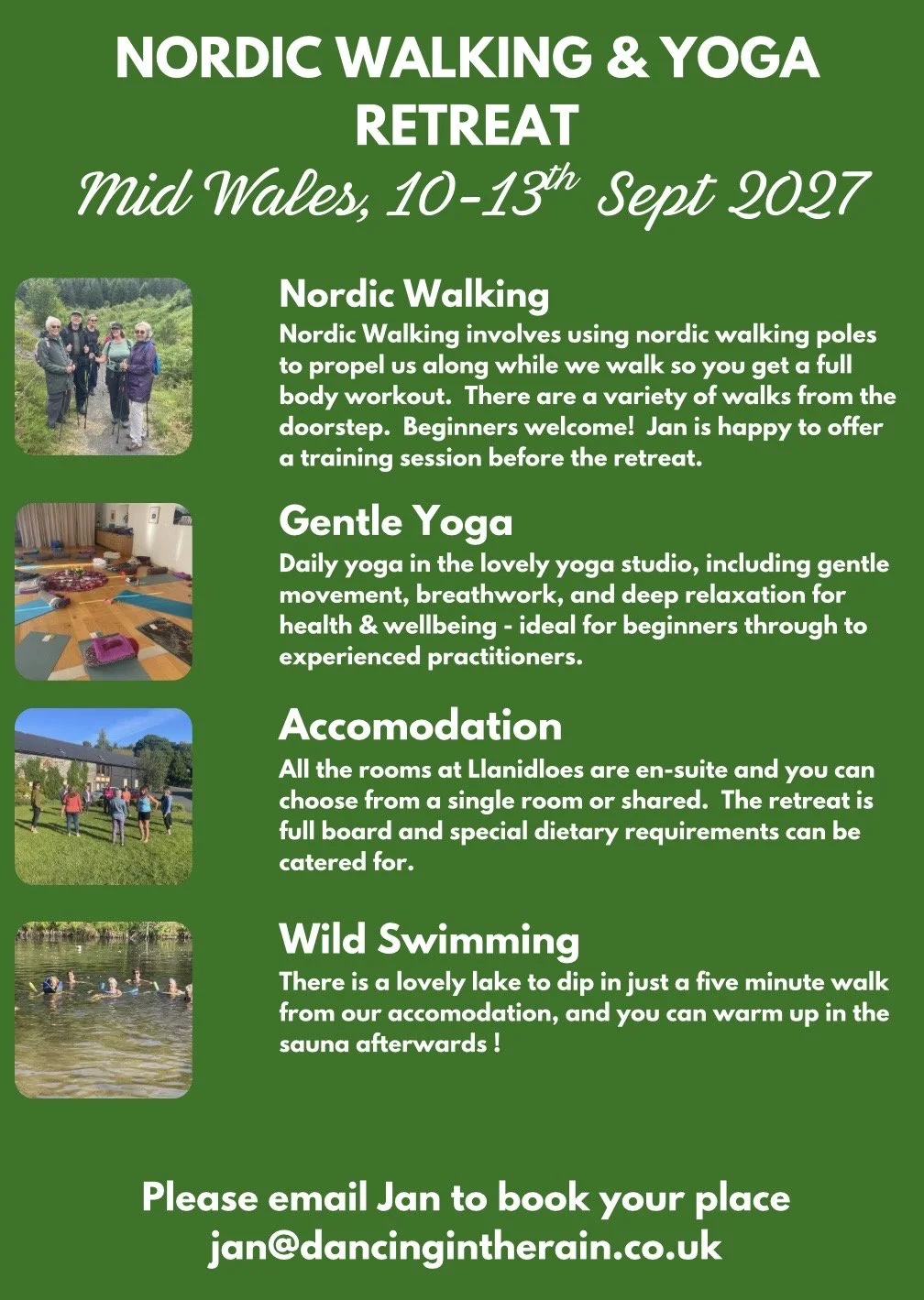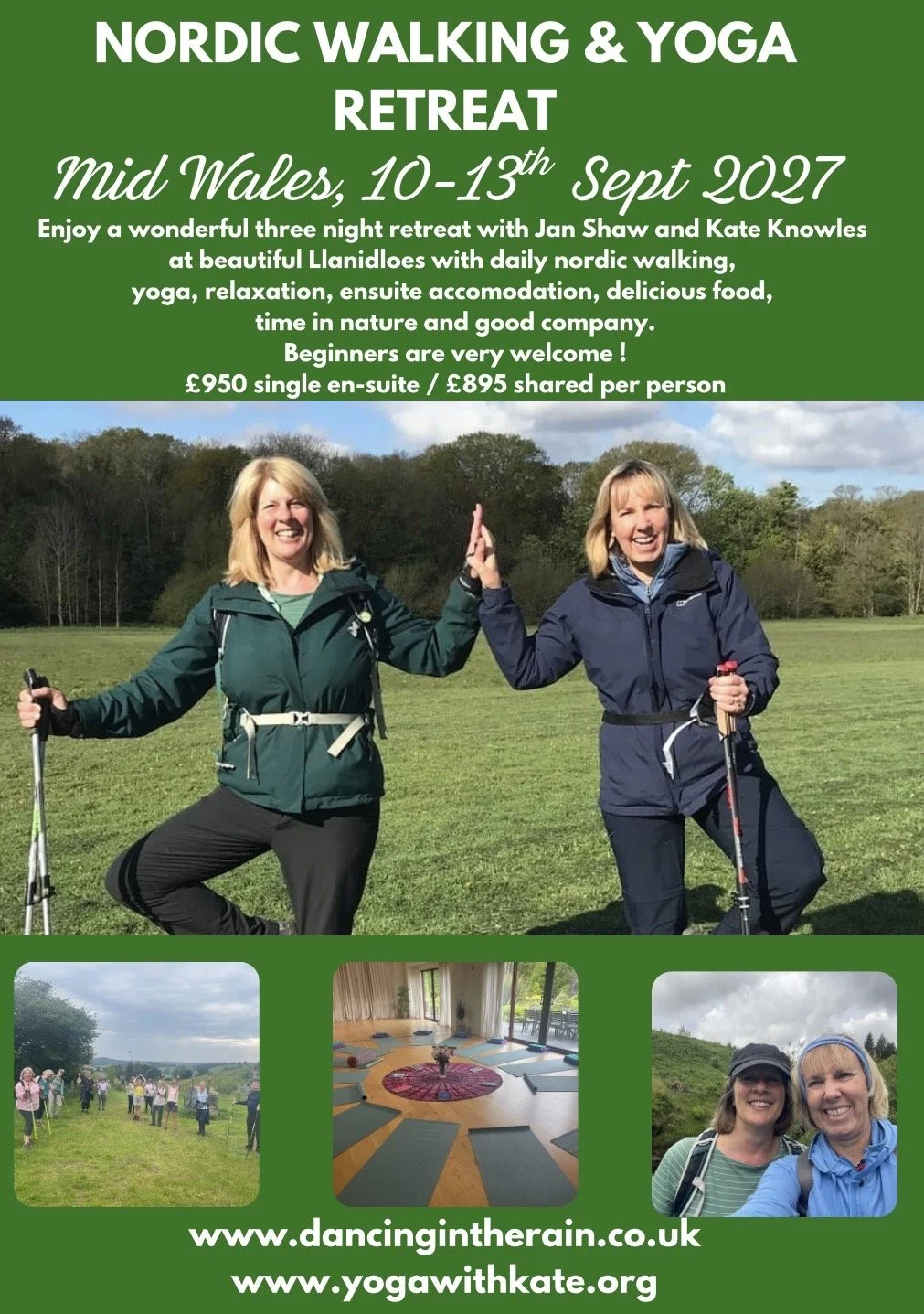 You are warmly invited to join Jan Shaw and Kate Knowles for a three night retreat to enjoy nordic walking and gentle yoga - no experience needed of either ! This will be our second trip to Garth Barns in Llanidloes, just over two hours from the Wirral.
